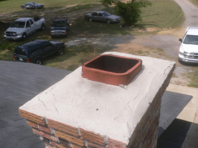 chimney is missing a chimney cap. A chimney cap acts as a rain