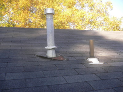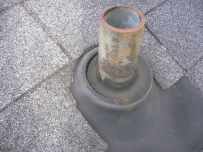 This heating unit vent stack flashing has pulled